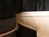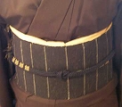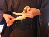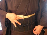 しっかりと、やはり帯(帯板)ときものとの間側奥深くに入れます。